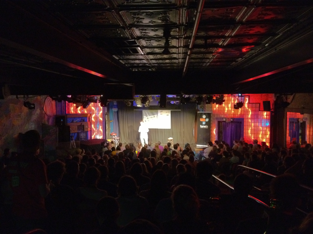 Yesterday the Trade Show ended. It was another thing that I hardly dug in to. I mostly passed through it on the way to the Meet Up Pavilion … for the meet ups … so that’s over. But I promise to relate the Gear Show to you. I tried to see Sleepwalk With Me, a film featuring comedian Mike Birbiglia, but it was massively full. Fortunately, I managed to catch him for a stand-up set at Esther’s Follies. He is a storytelling comic, as am I, and he is a great influence on me, writing a book, performing it as an off-Broadway monologue, and finally making a hit feature film. He told the story of how he first made out with a girl as a teenager and embarrassing failed attempts leading to it; the hilarity ensues.
