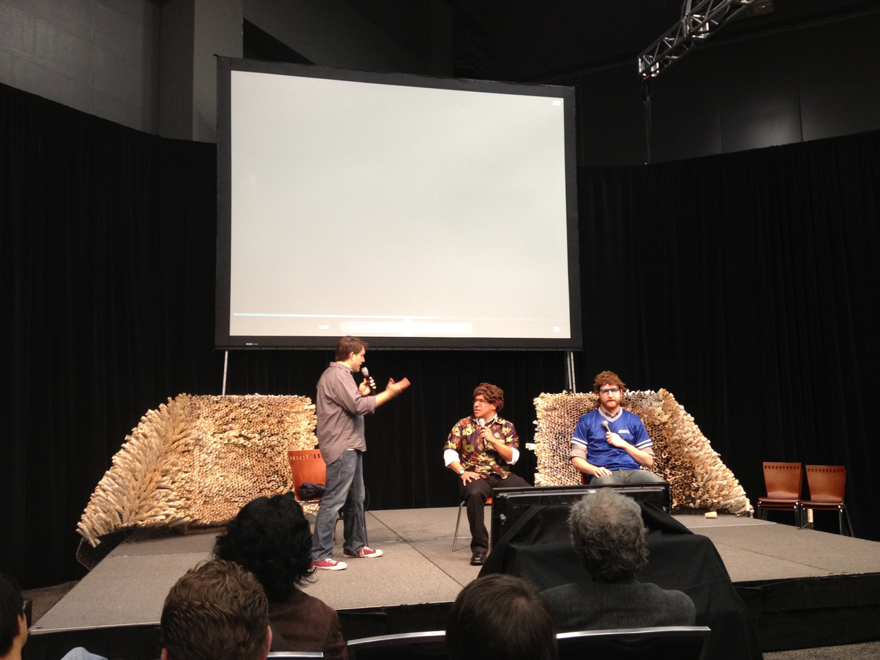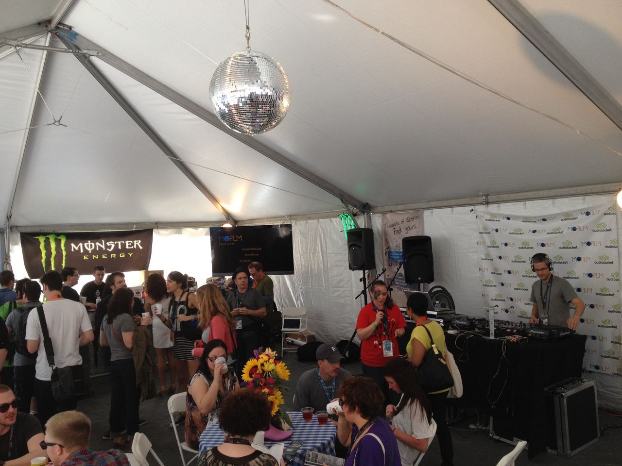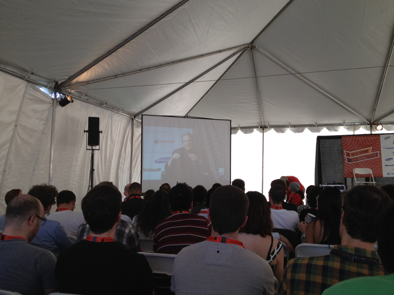 Palm Park became a default location for the massive audience spillover for the Sean Parker Presentation with Al Gore. Their discussion about web content and the political process was intuitive and insightful. Admittedly, I was disappointed to miss Al Gore in person and witness that conversation unfiltered. The line was backed up three city-blocks twenty minutes prior to doors opening for seating; I had no chance. We had to go to that tent and watch a streaming simulcast buffer and blip out sections of video. I had been watching that very buffering problem for days, and I watched the same tech guy helpless as the stream hiccupped constantly until half the crowd left in frustration, some of them starting drinking games: buffer, drink, buffer, drink. Eventually, I would leave too. Al Gore said things like, “Our democracy has been hacked,” and that the defeat of SOPA and PIPA are “great victories;” he discussed the problem of online campaigns that fail to reach past a superficial level of involvement with people. Sean Parker admitted that he is guilty of developing social media that is so often a dynamic means of “wasting peoples’ time”. And now that Parker has become a mega-wealthy tech icon, he largely focuses his energy on projects with greater meaning and intentions, including Causes and Airtime.