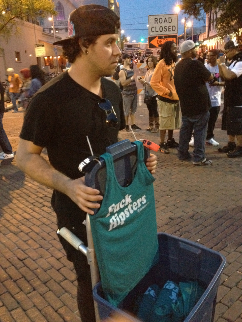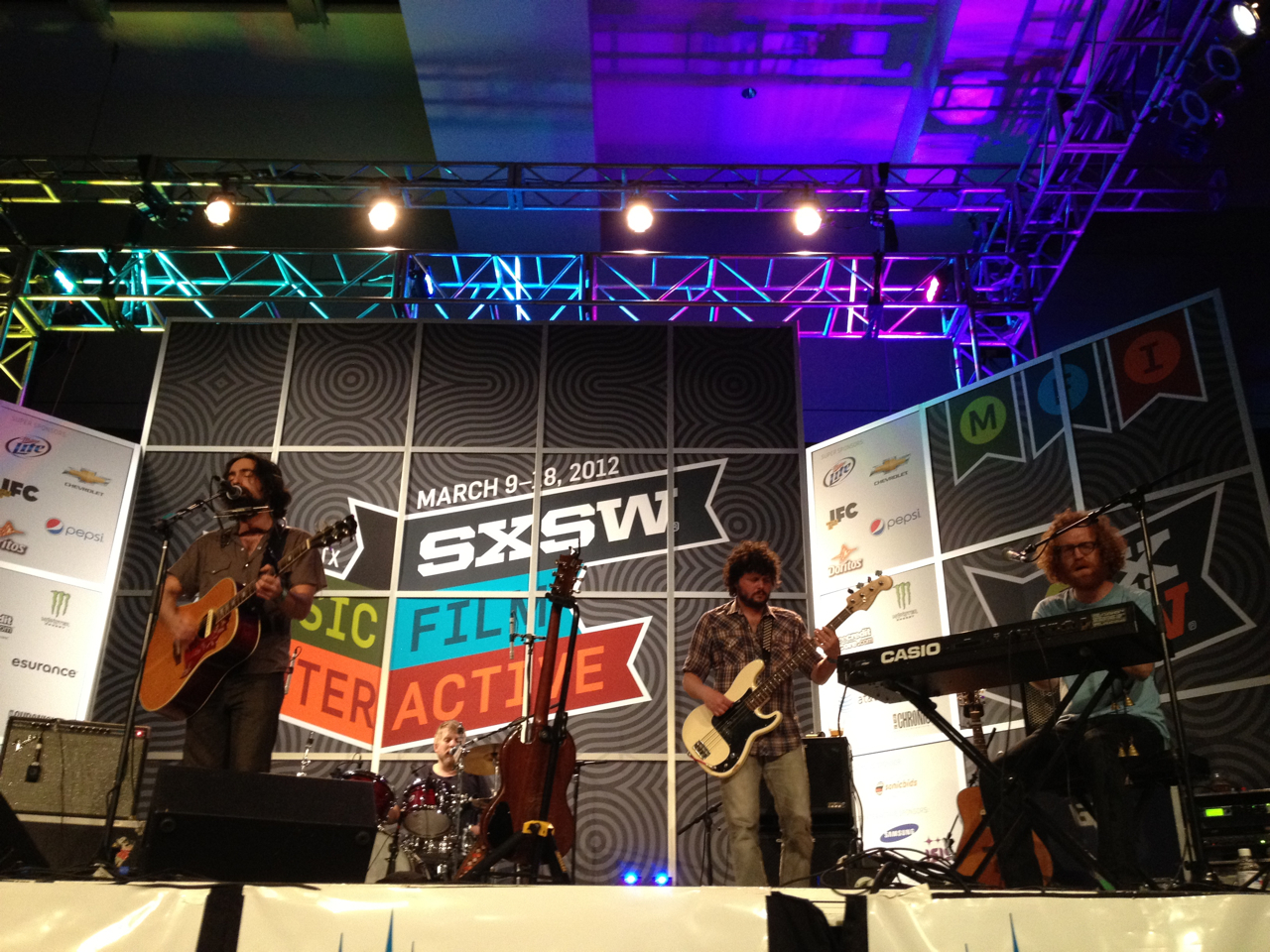 I caught to few songs of Portland alt-country band, Blitzen Trapper in one of the ballrooms at the convention center. It was weird. It’s like an outdoor festival inside a convention center. The band sounded great, although it’s not my thing, they bring great songs with strong vocal harmonies to the show and that’s bottom line. After that I caught about half of The Magnetic Fields show in a tremendous state of the art venue, the Moody Theater, and I think it was being taped for Austin City Limits. They are a class act, that band. Instrumentation was basically acoustic with Stephin Merritt on harmonium and some electronic devices, a small keyboard, but otherwise it was upright piano, cello, and guitars, especially ukulele. The understated simplicity of their work and catchiness remains their signature through the years, whether it’s a lot of electronic sounds or acoustic, the band knows how to make a pop song. I can only mark them pop because what else can you call them? Not alt-country, definitely not, not folkie, not goth but sometimes they attract that audience. In this audience they had to do a lot of shushing because the gossipy chatter and obscene excitement from women in heels and tight clothes cut across the gentle sounds of their instruments and soft-spoken vocals, kind of the opposite of most bands in south by.