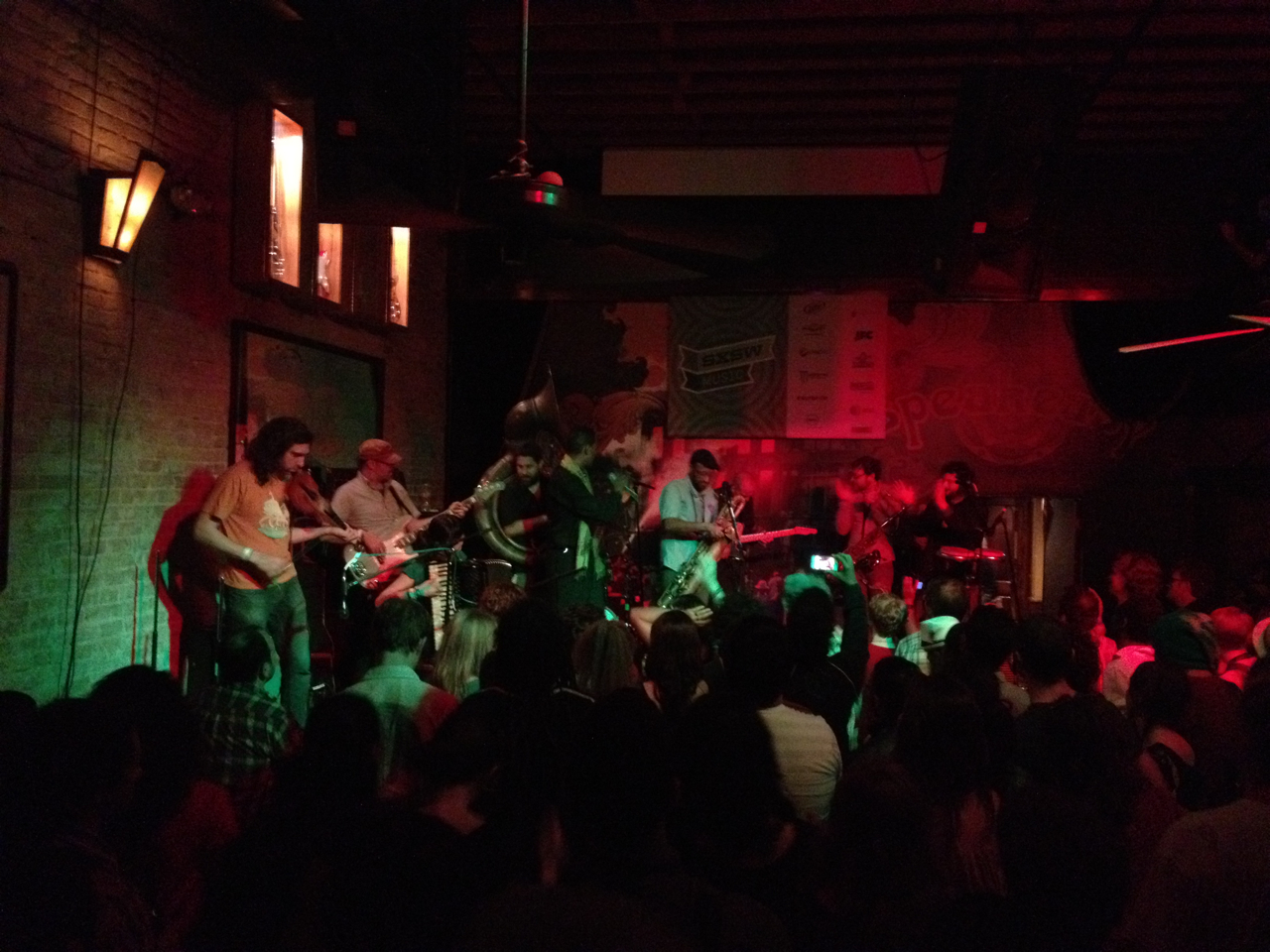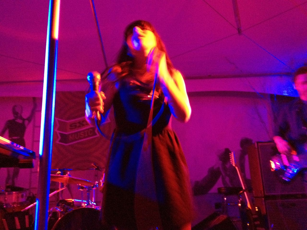 From there I shuffled my feet across town for Los Angeles’ Nite Jewel. I first caught her on Dublab radio and thought she had a good sound. The effected vocals have a way of homogenizing each song, not that it was bad, but I’m having a hard time recalling anything really specific about it other than liking the beats, melodies, and band in a general way. She’s a regular lady, small and humble, dancing on stage with hair bouncing – almost like a little girl in her room alone. I don’t know her history, but now she has a professional group of musicians, a smart move on her part, rather than get egotistic hipsters who can’t play, become a famous, paid act and hear your songs come to life.