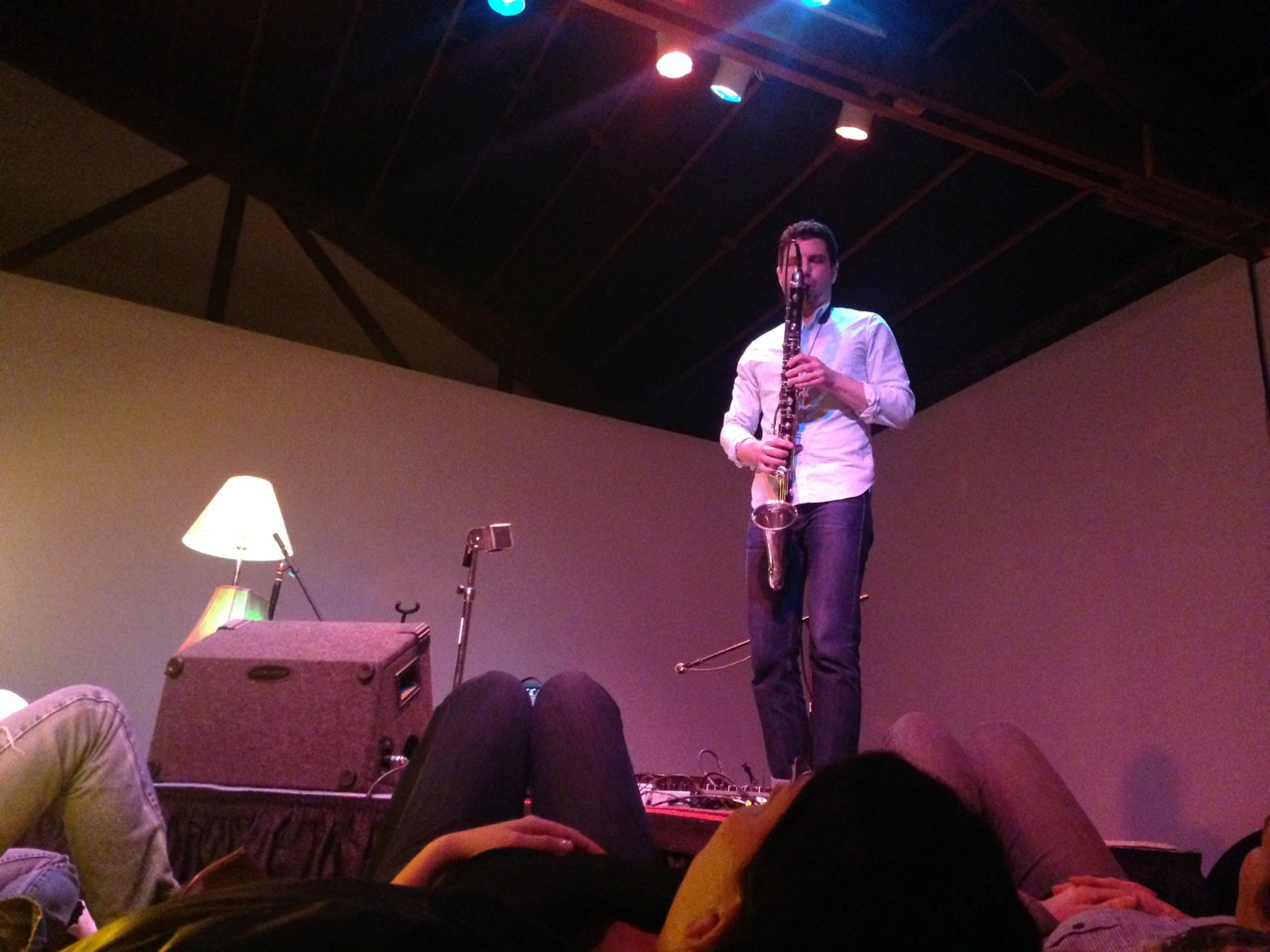 My personal bias against volume is perfectly in line with this festival. I am truly tired of going to simple dive bars and lounges and feeling blasted, not only by live music, but also the bartender’s iPod mix. Less art on the walls these days as televisions become standard. This idea that louder is better has become prevalent and permeates everywhere, to the extent that you cannot escape it at all if you’re participating with urban nightlife. I have grown nostalgic for lower-wattage p.a. systems and often marvel at the idea that early nightclubs, like the ones Miles Davis and Thelonius Monk played, were not even amplified. That sounds marvelous to me. So an event that is amplified, involves electronic and rock music artists but sets the intention, and the audience agrees with that intention of shutting up and enjoying the sounds, is pretty well aligned to my bias.