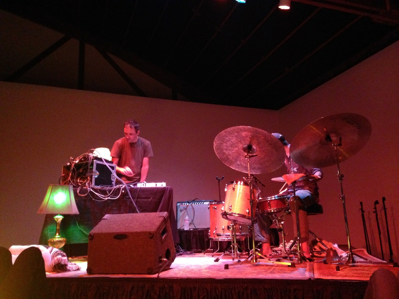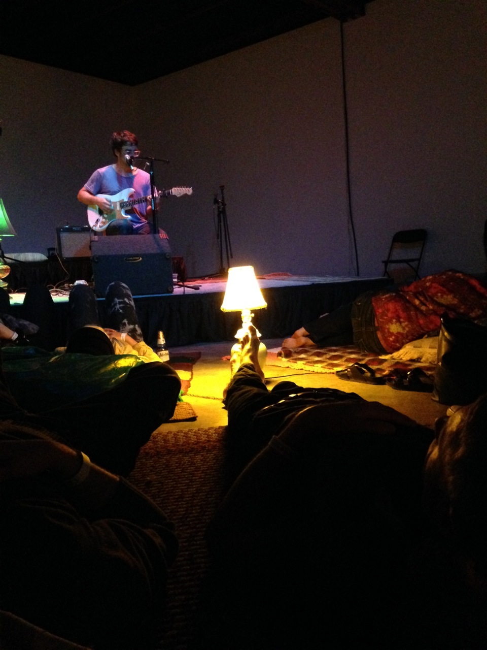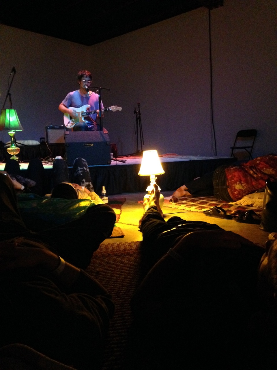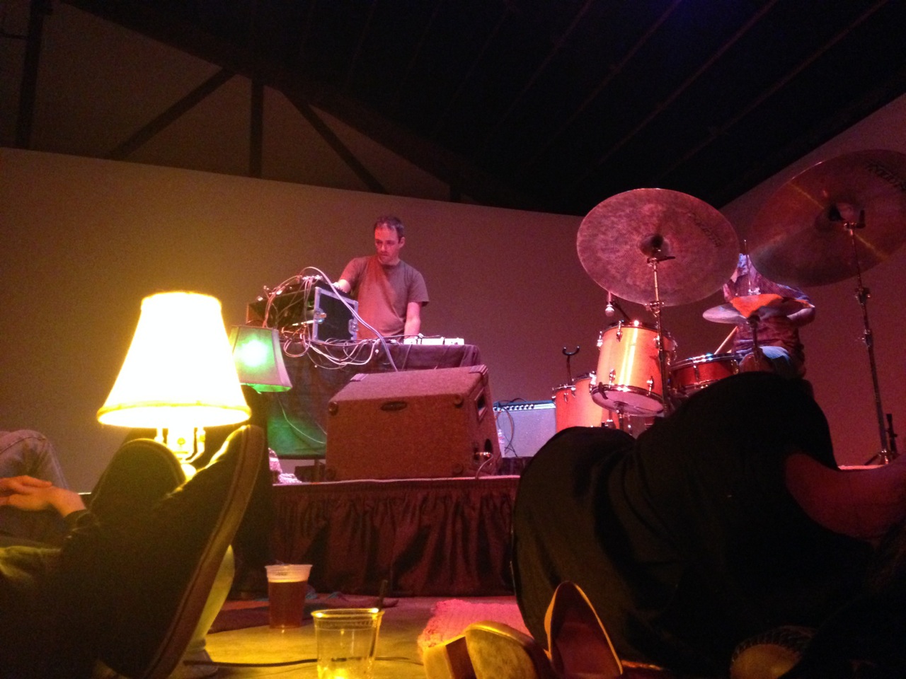 Sun Foot took the reigns by opening the show on Saturday. They were cute. Chelsea Rector was a little drab as a performer, but sometimes funny. Her stage time lasted exactly as long as it needed to. I enjoyed Hush Arbors. His singer-songwriter styling was not always original, but his personality was pleasant and perfectly matched for the room as he humbly strummed his tunes. The electronic-oriented performance of Tujurikkuja was nap inducing. The fellow right behind me snored through the final, increasingly quiet set at the end of Saturday. They dimmed the stage lights while audience members voluntarily switched off their lamps. It was soothing. It could be a drone but it didn’t suck you in the undertow. It could be glitchy but was never jarring, always soothing.